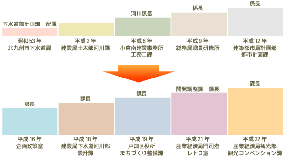 土木の仕事の範疇はかなり広いと言えます。下水、河川、都市計画、人材育成、新しい航空会社の立ち上げや倒産寸前の会社の再建計画など、市役所だからこそ何でもやれる(やらされる)のかもしれません。出先に飛ばされたこともありますが、地道な仕事こそ自分の力になると実感しました。今ではその経験が随分役に立っています。大切なのは、仕事に流されず、これでいいのかと問題意識をもつこと、そうするとどんな小さな仕事でもやりがいが見えてきます。