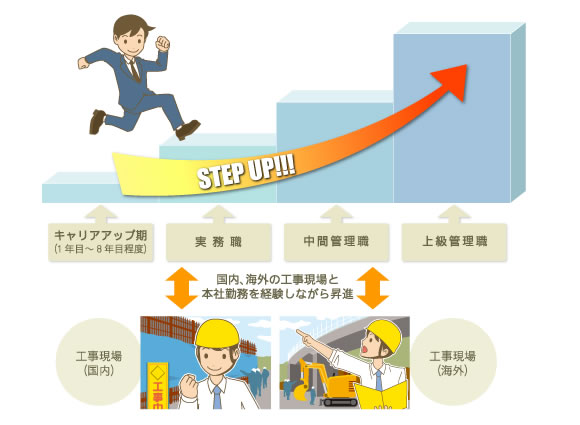 将来的には計画〜施工〜運営まで自分で責任をもって行えるようになれればと思っています。そういう職種は所長や監理技術者という立場になります。