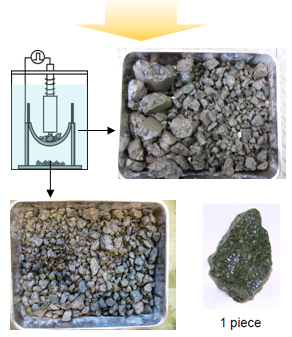 それによってさらに骨材と骨材表面の付着物との分離が進んで、コンクリート中の骨材が元の形状や品質を殆ど損なうことなく回収されます。
